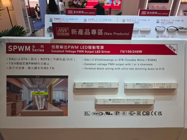 Extending MEAN WELL’s PWM product line, this series features terminal-type outputs and supports multiple control modes, including 3-in-1, DALI-2, KNX, and Matter. “The SPWM Series is truly an all-in-one solution,” said Hu. “It broadens the application scope of PWM technology and offers customers outstanding cost performance.”